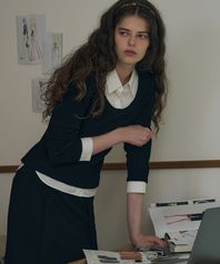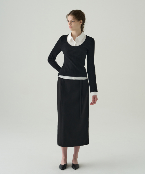포엠 레이어드 카라 셔츠 탑 [BLACK]