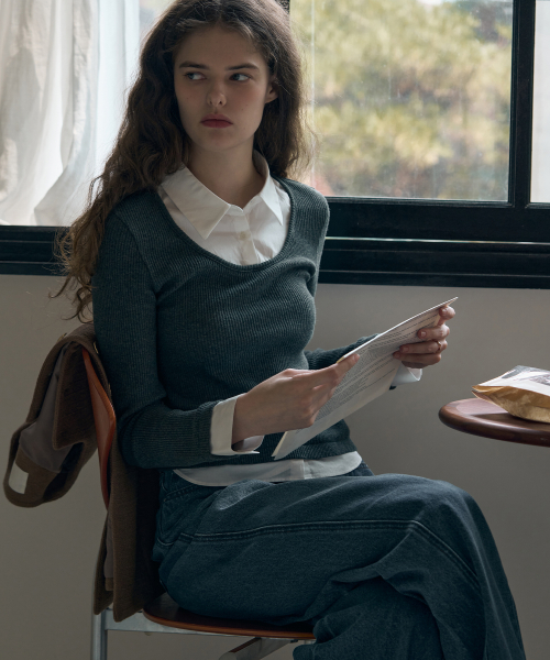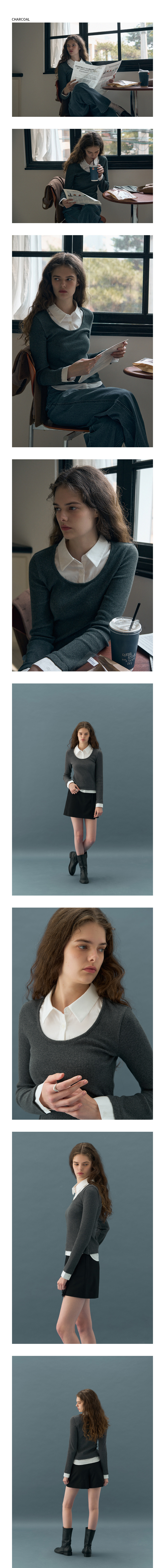 포엠 레이어드 카라 셔츠 탑 [CHARCOAL]