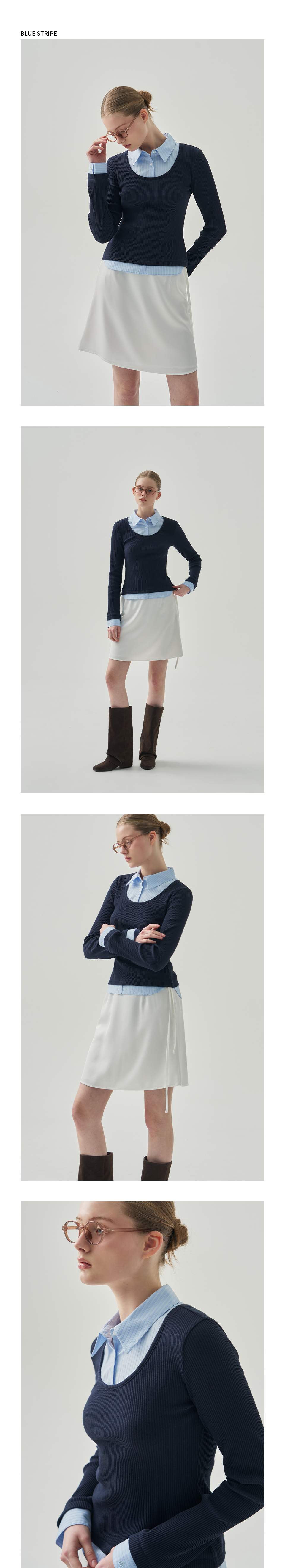 포엠 레이어드 카라 셔츠 탑 [BLUE STRIPE]
