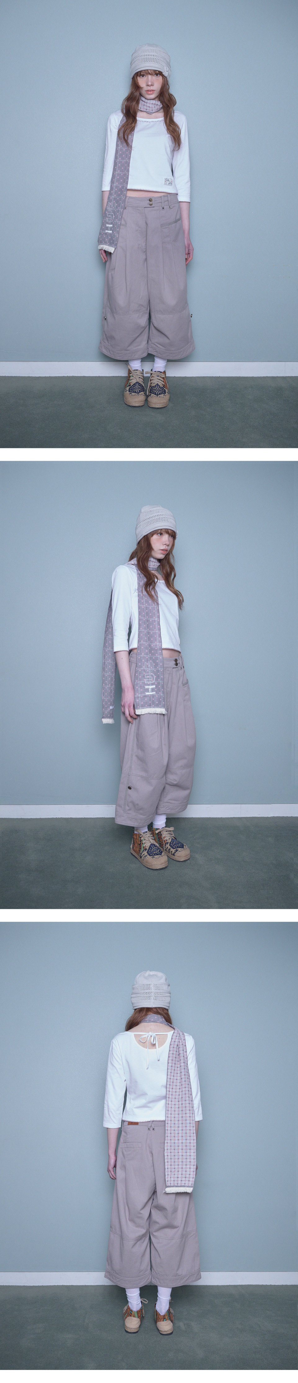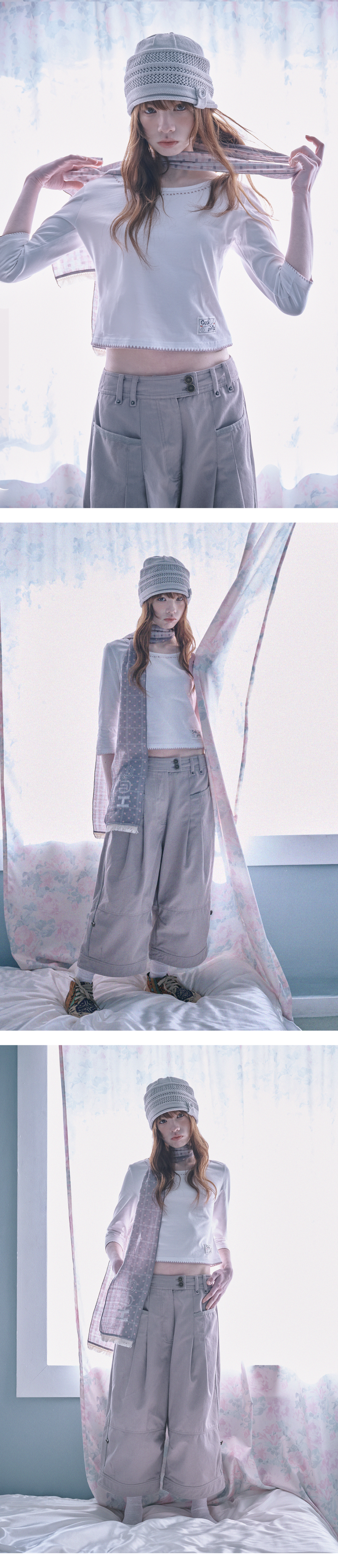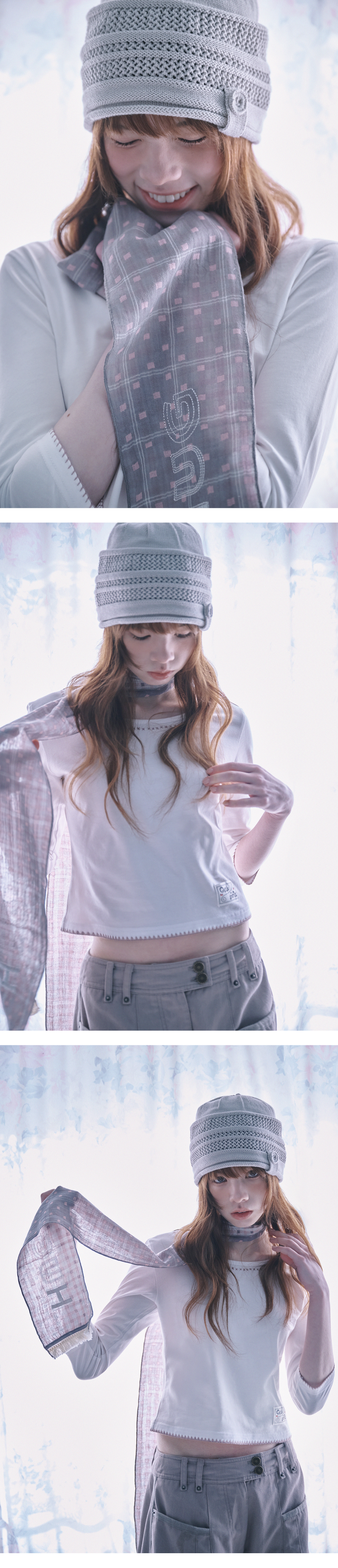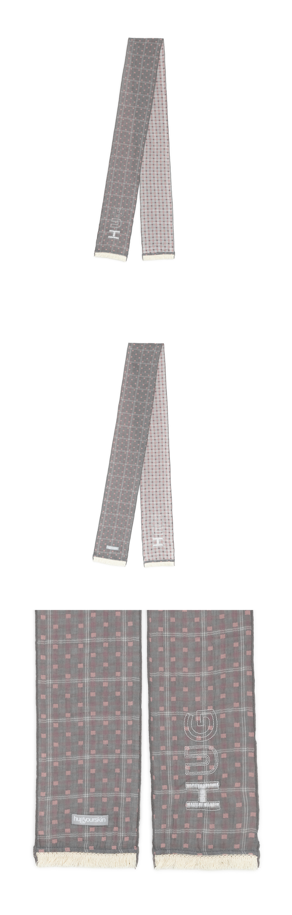 허그 니들워크 코튼 스카프 (핑크 그레이)