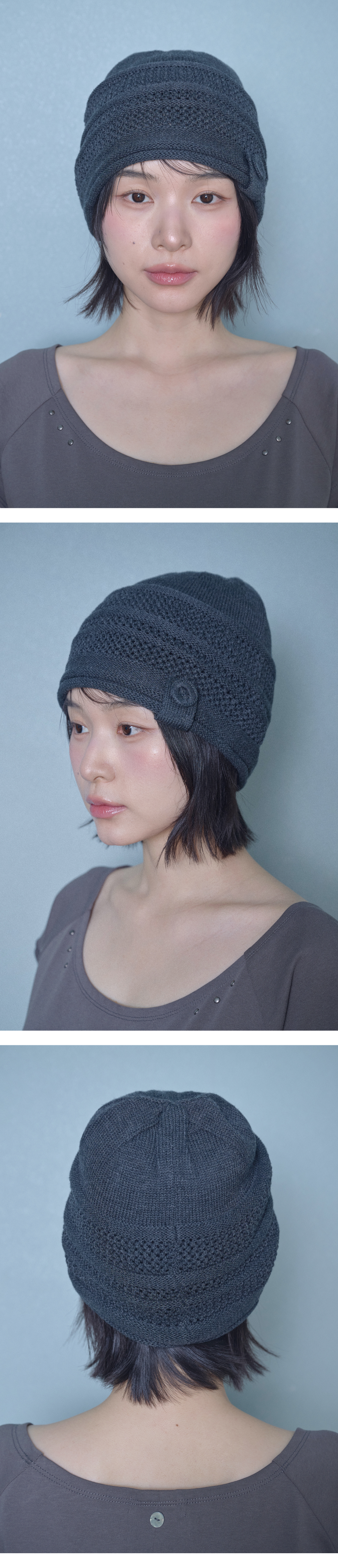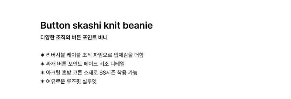 버튼 스카시 니트 비니 (차콜)