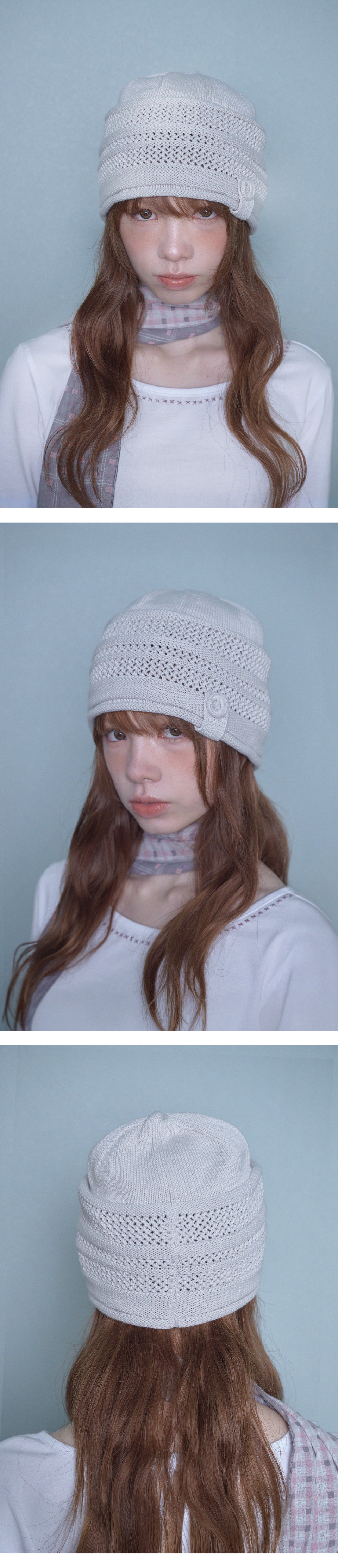 버튼 스카시 니트 비니 (아이보리)