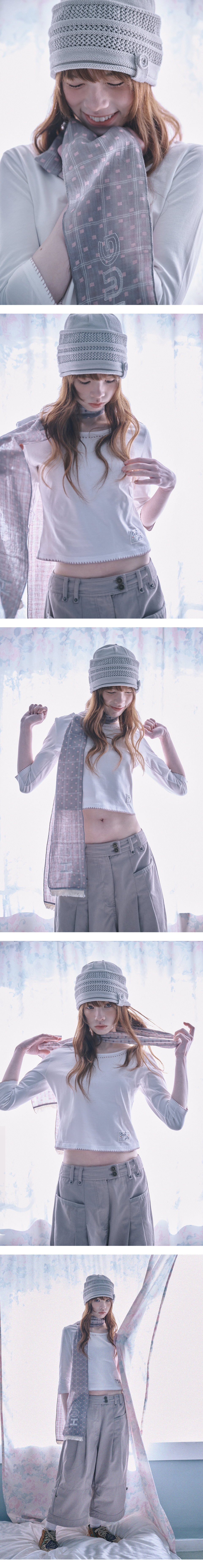 버튼 스카시 니트 비니 (그레이)
