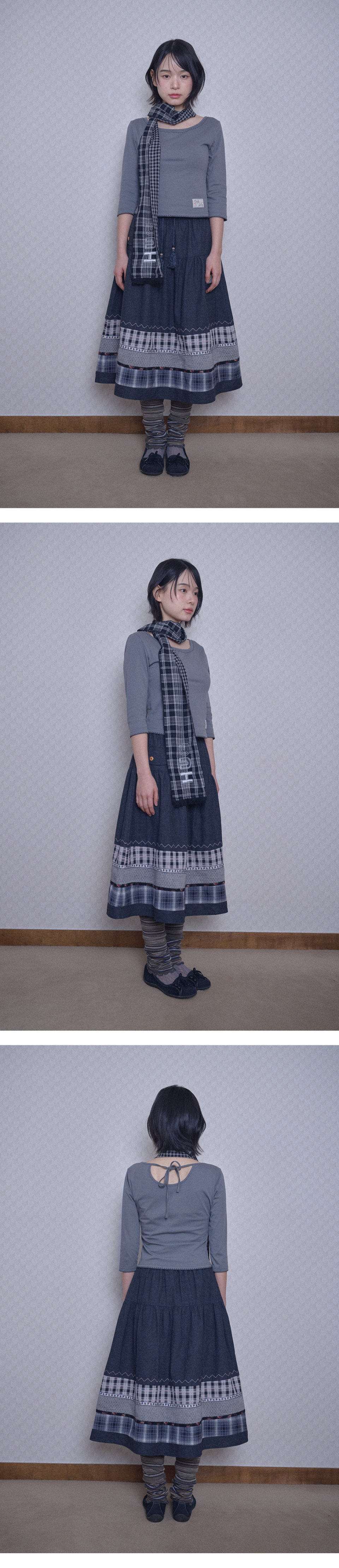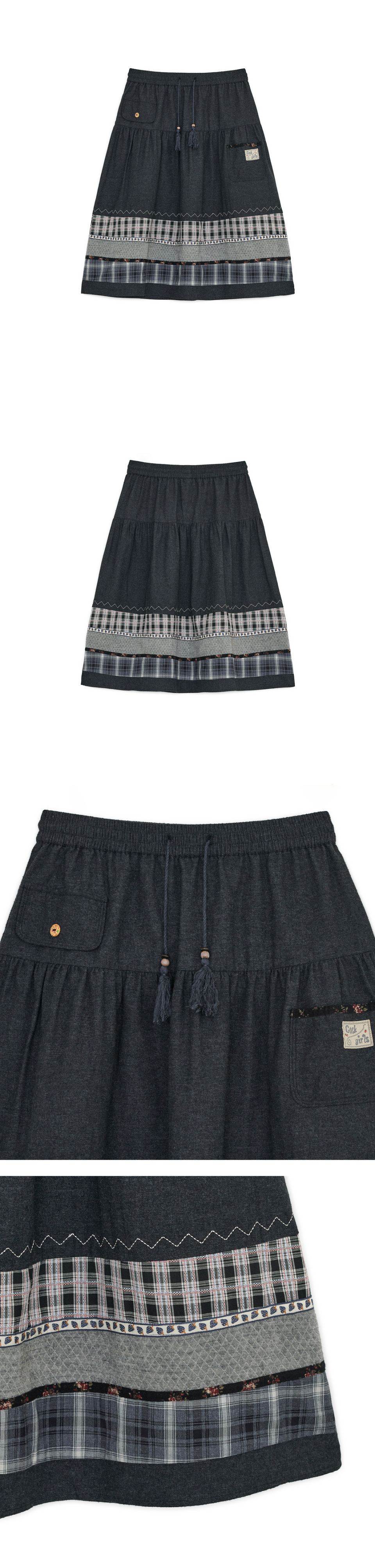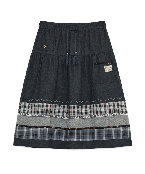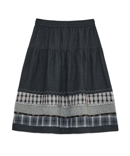 빈티지 패턴 미디 스커트 (블랙 데님)