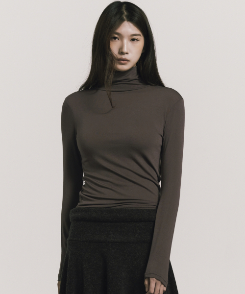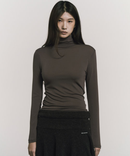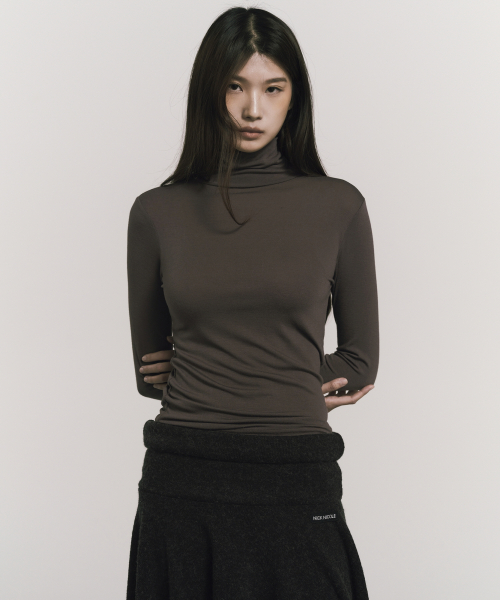 [ESSENTIAL] SLIM TURTLENECK TOP_BROWN