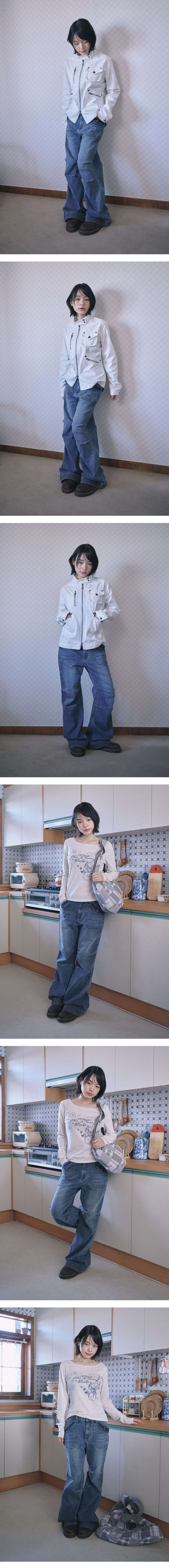 세미 부츠컷 데님 팬츠 (블루 데님)