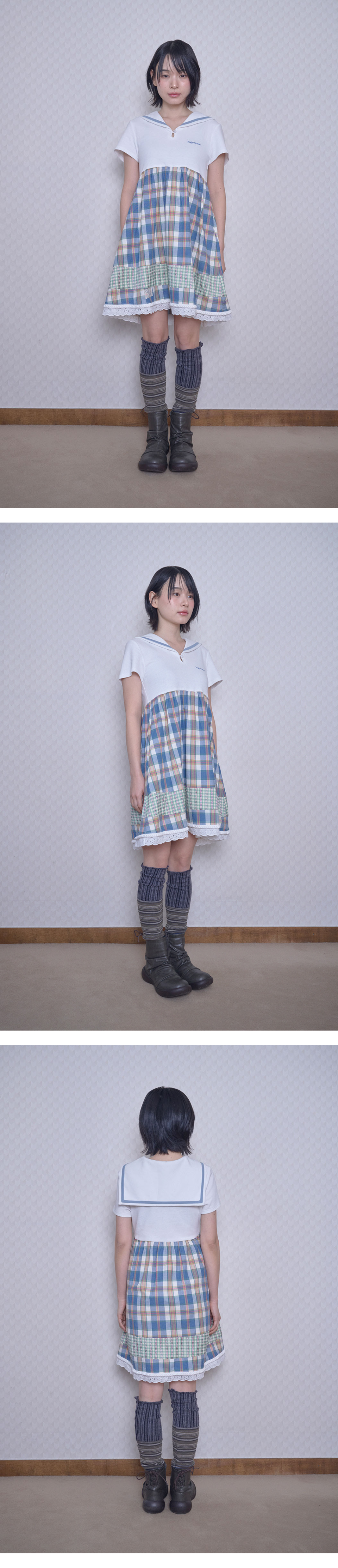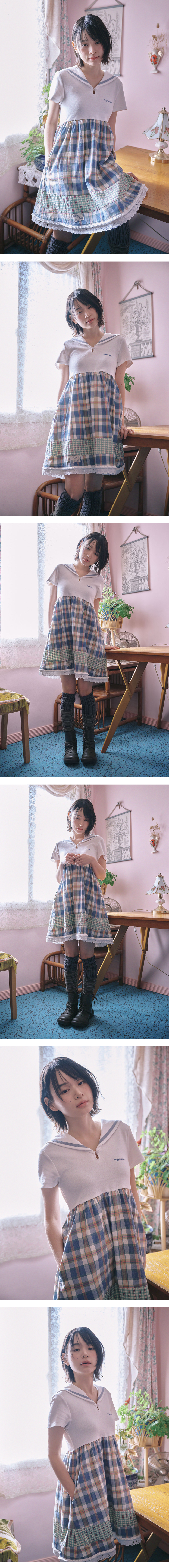세일러 카라 체크 드레스 (아이보리)