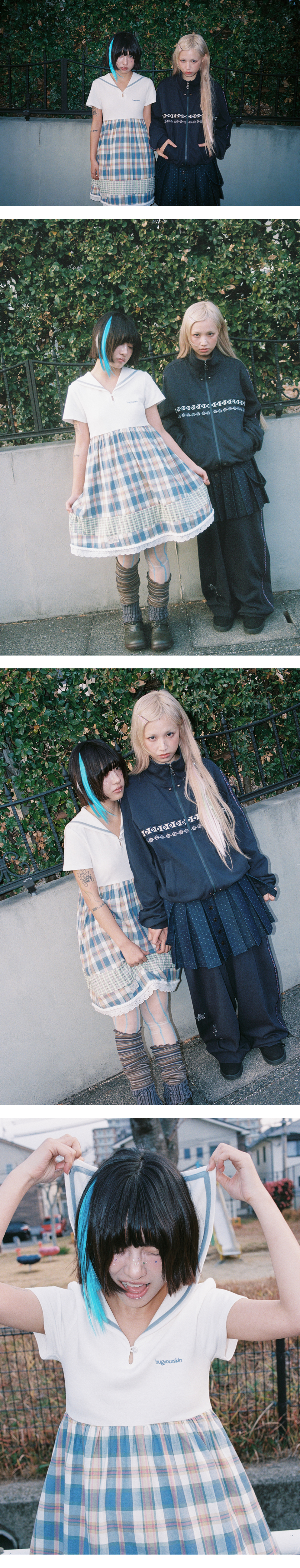 허그유어스킨(HUG YOUR SKIN)은 피부와 가장 가까운 옷을 추구합니다. 자연스러움과 자신의 주체성을 표현하기 위함입니다. 파운더이자 타투 아티스트인 HUG의 프린트를 바탕으로 타투가 상징하는 소수 문화와 대중적 디자인 사이의 접점을 추구합니다.