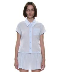 PWC 코튼 레이스 트림 하프 슬리브 셔츠_스카이
