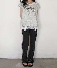 도트 라인 폴드오버 부츠컷 팬츠 애쉬 네이비