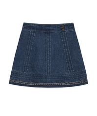 데님 니들워크 미디 스커트 (블루)