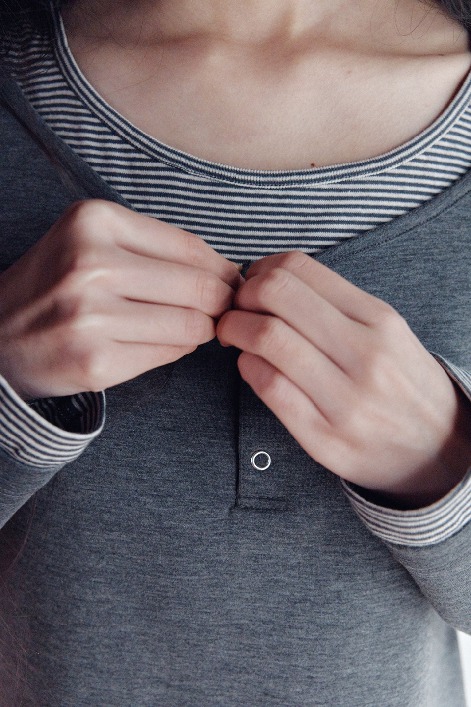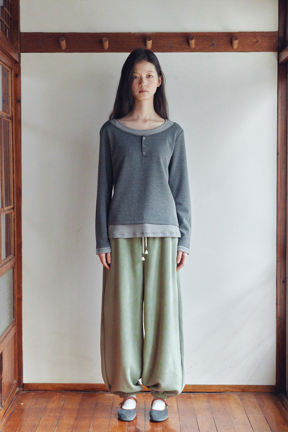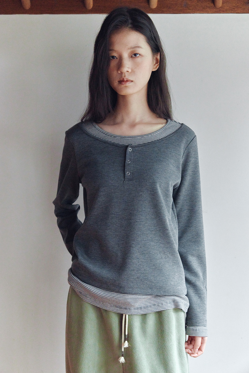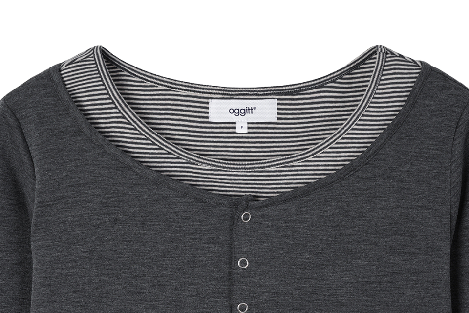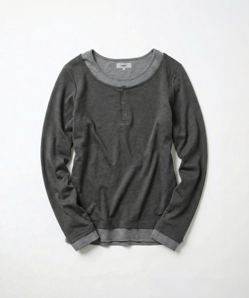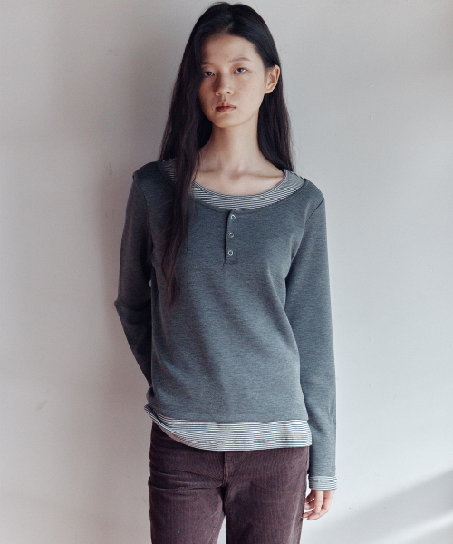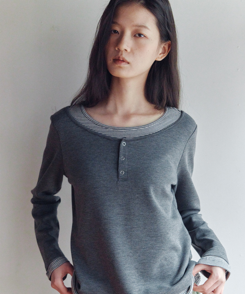 헨리넥 레이어드 긴소매 티셔츠 차콜