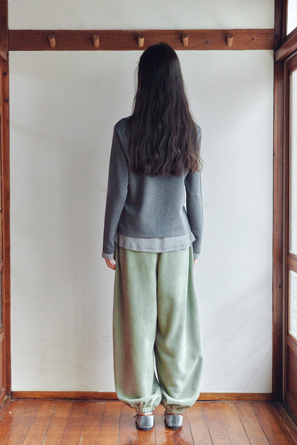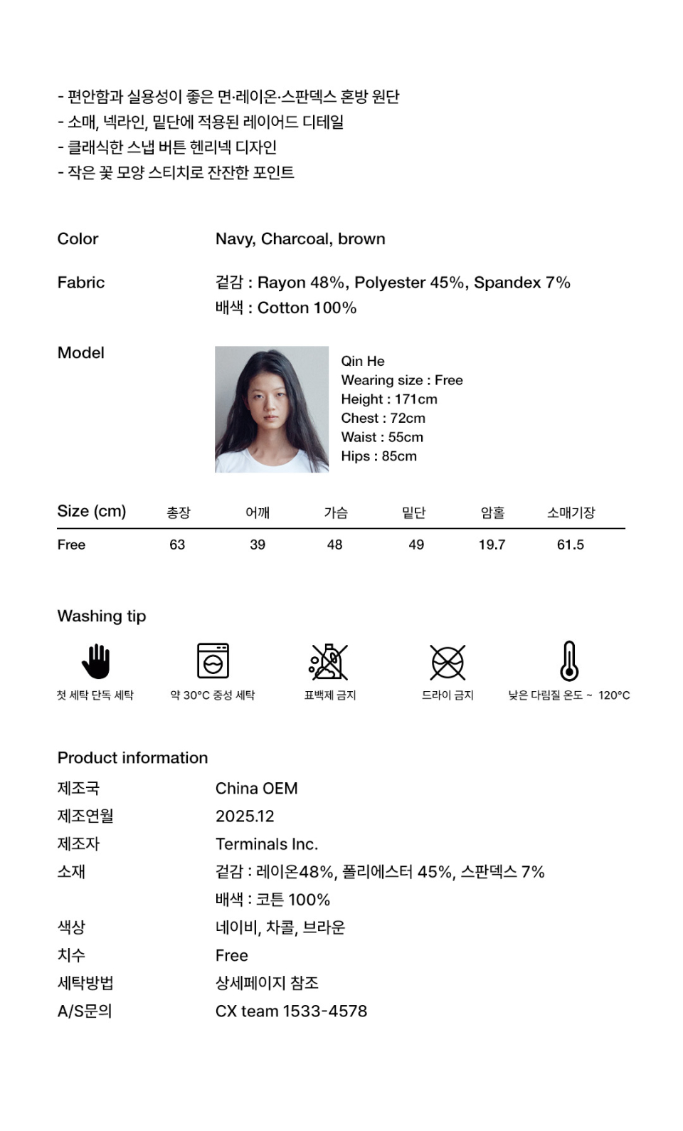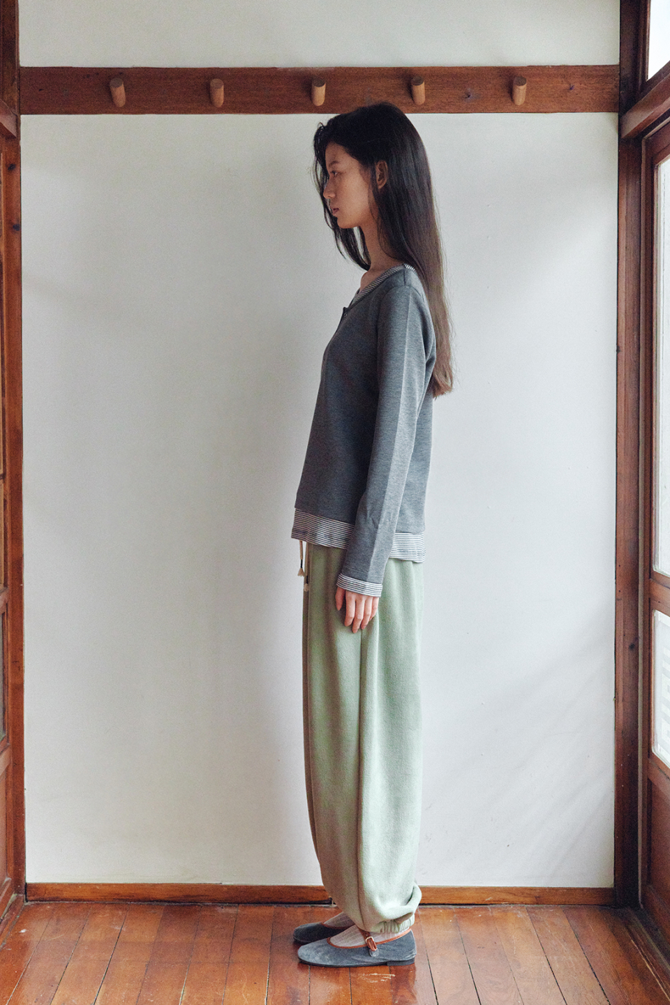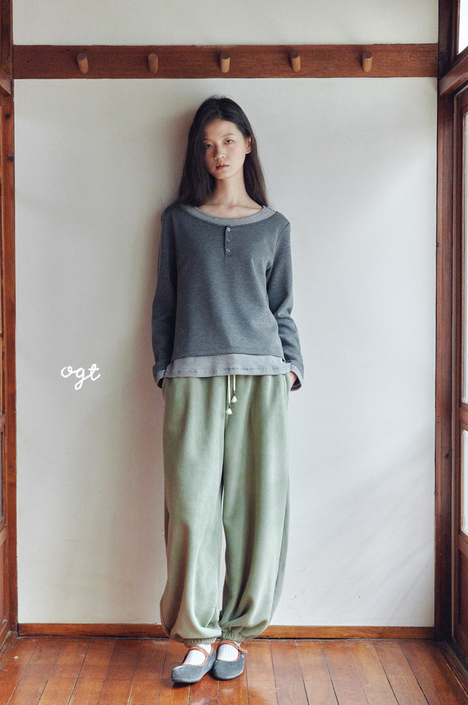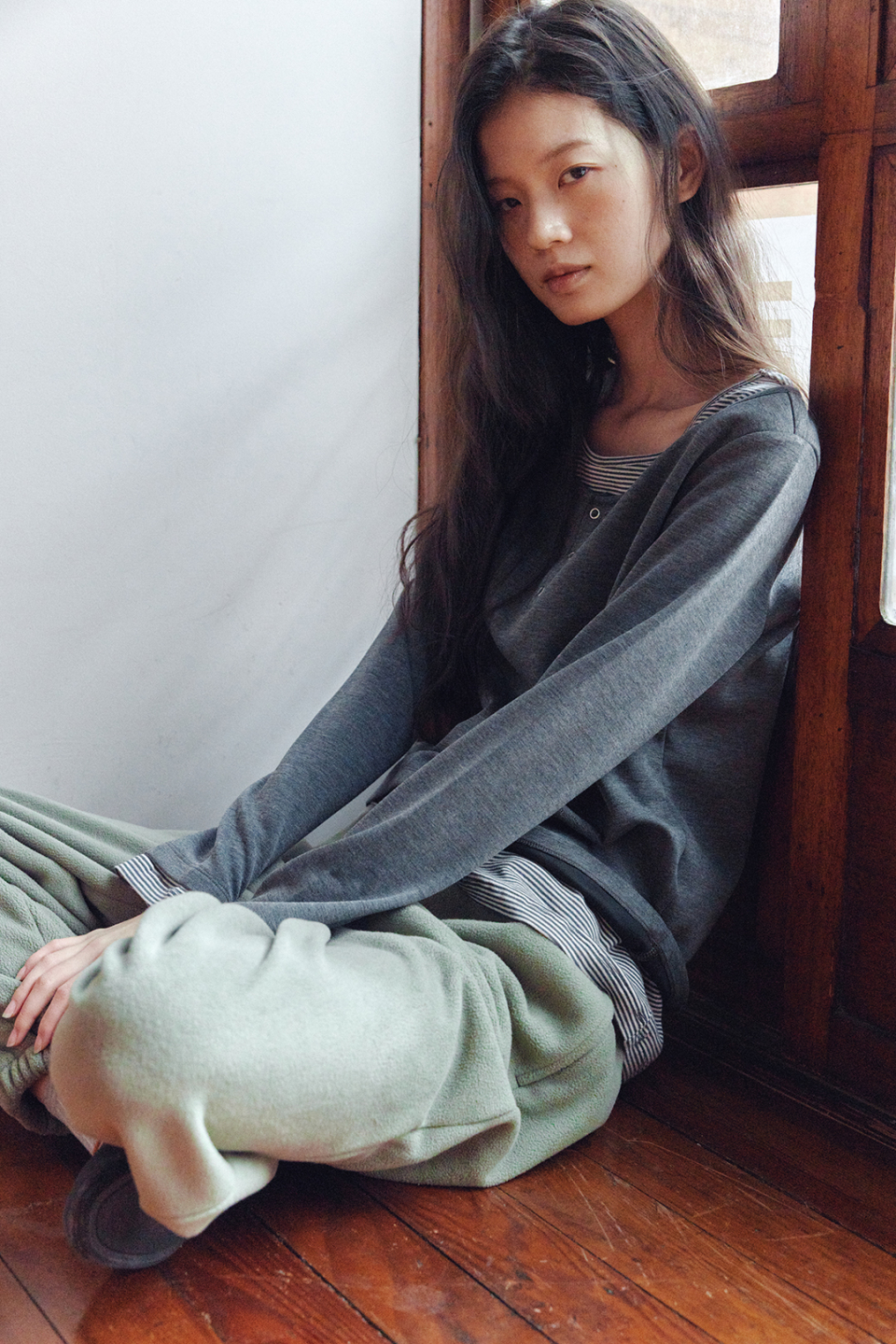 헨리넥 레이어드 긴소매 티셔츠 차콜