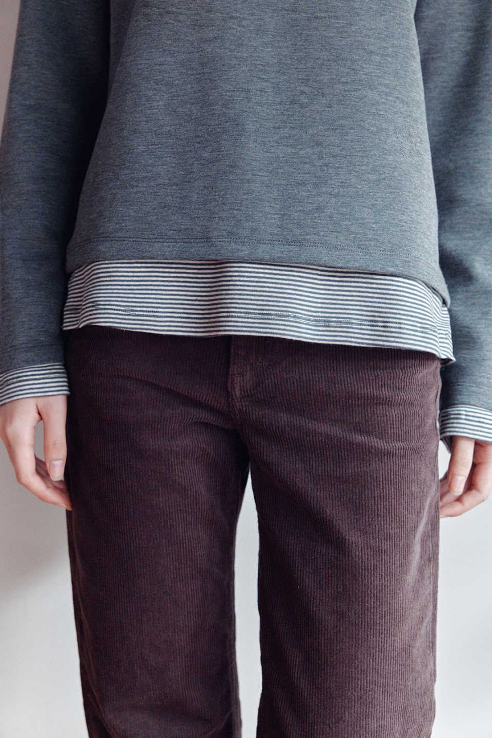 헨리넥 레이어드 긴소매 티셔츠 브라운