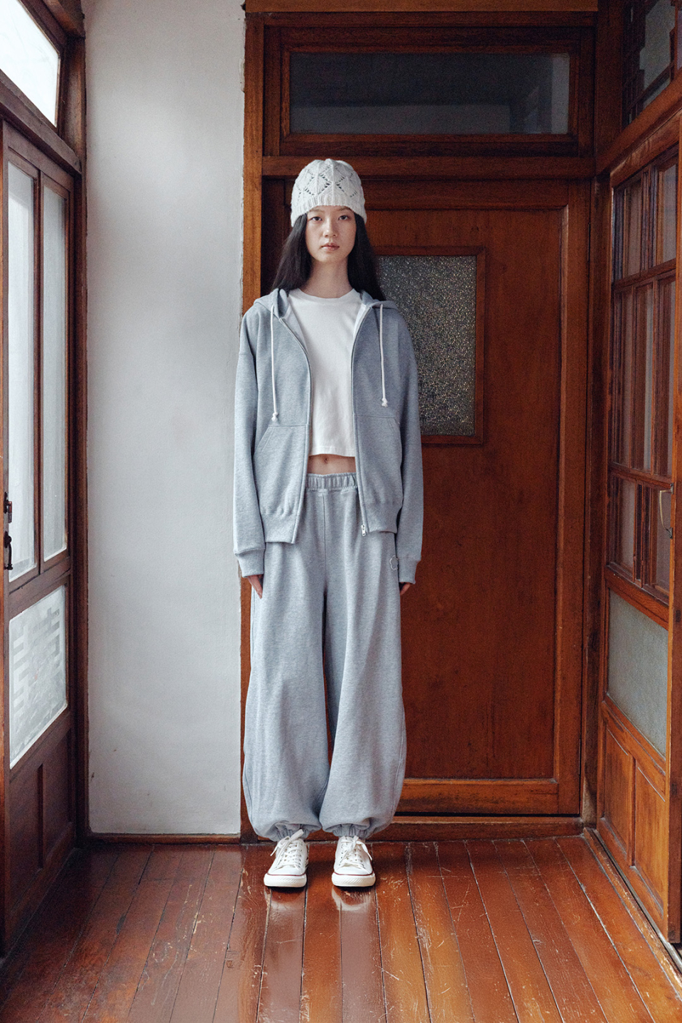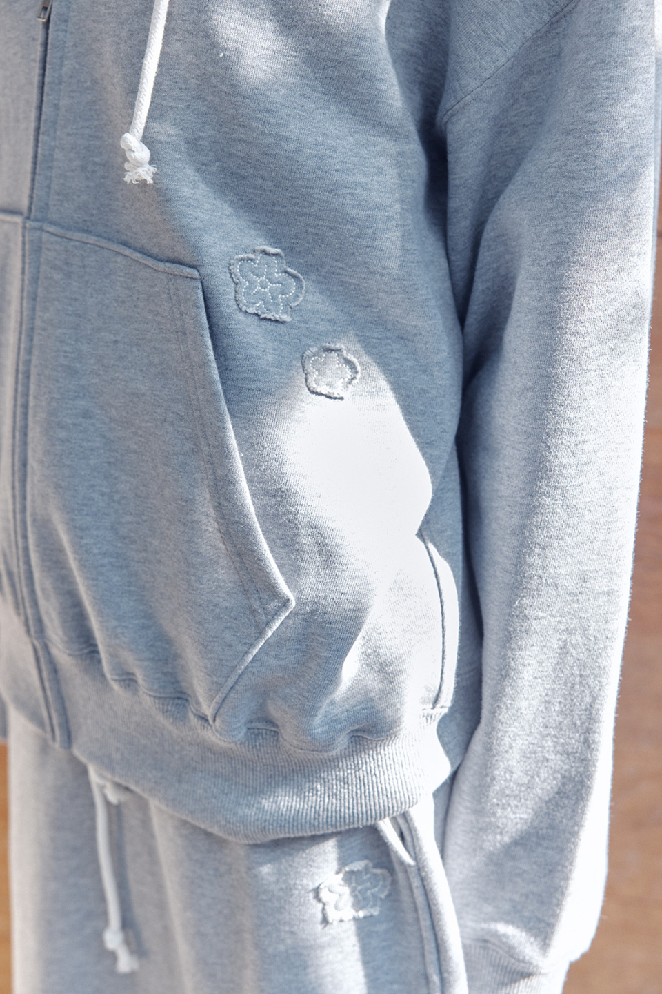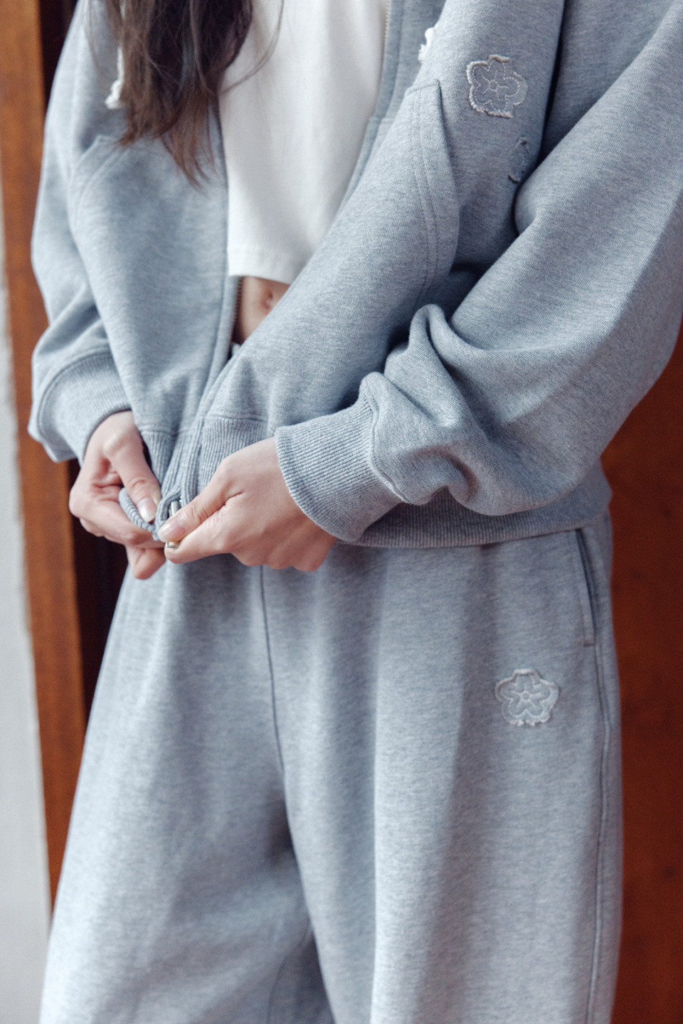 꽃 아플리케 벌룬 조거 팬츠 그레이