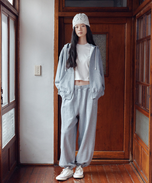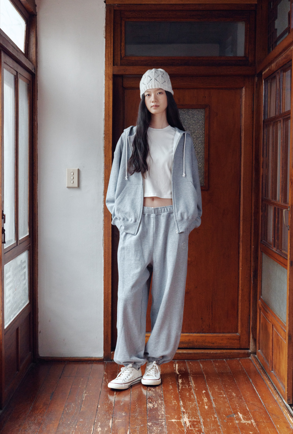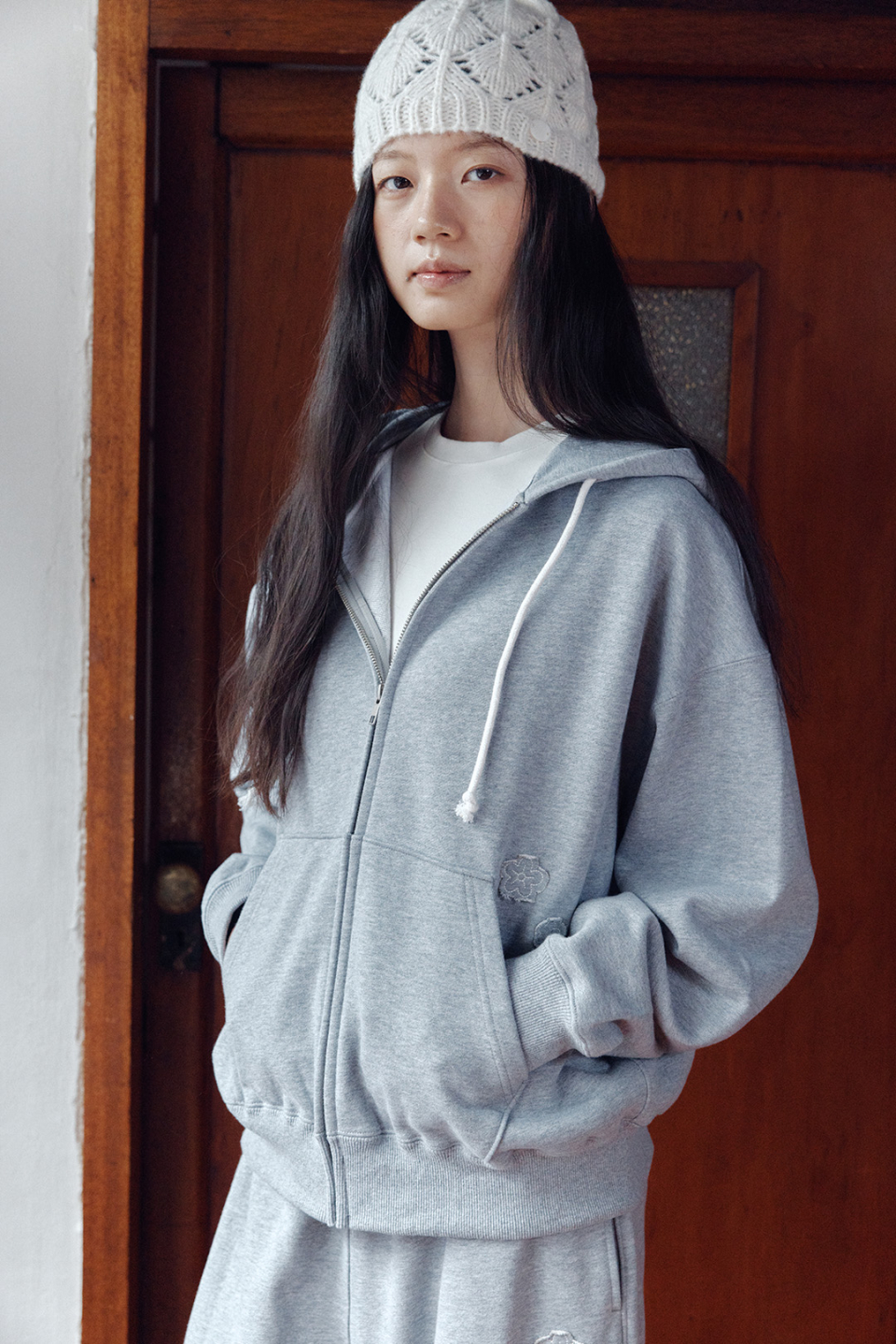 꽃 아플리케 벌룬 조거 팬츠 그레이