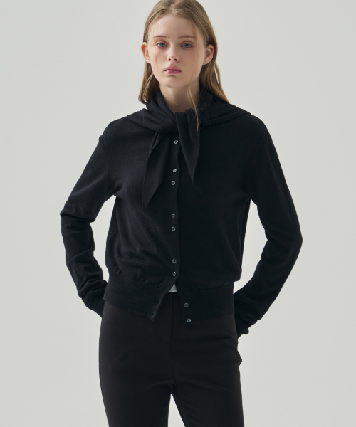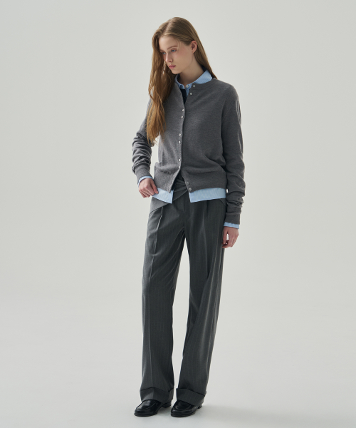 컴포트 라운드 니트 가디건 (커치프 세트) [M.GREY]