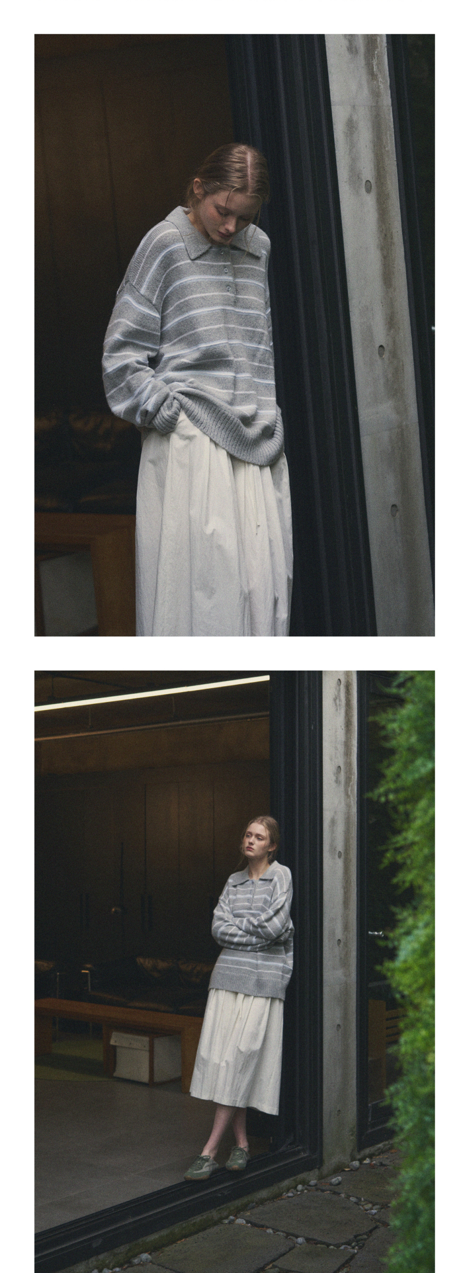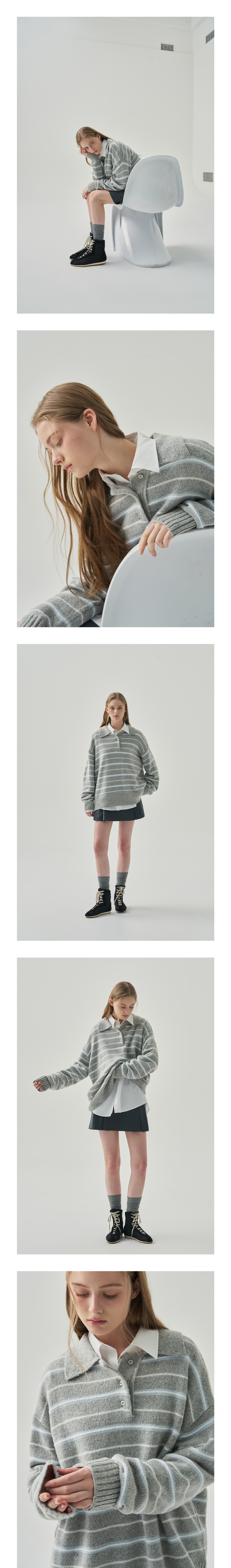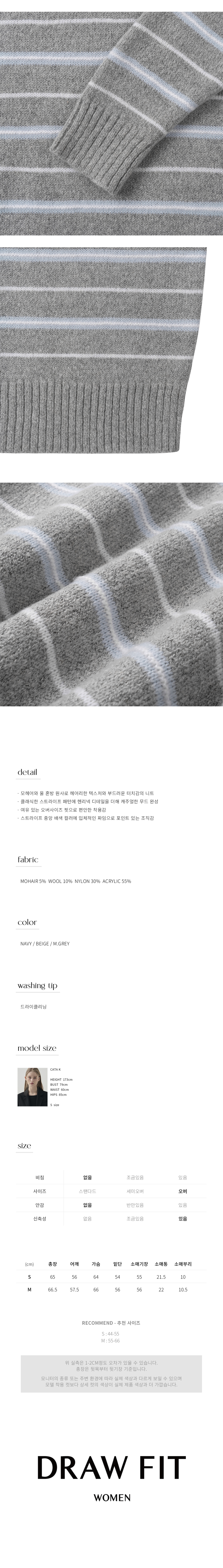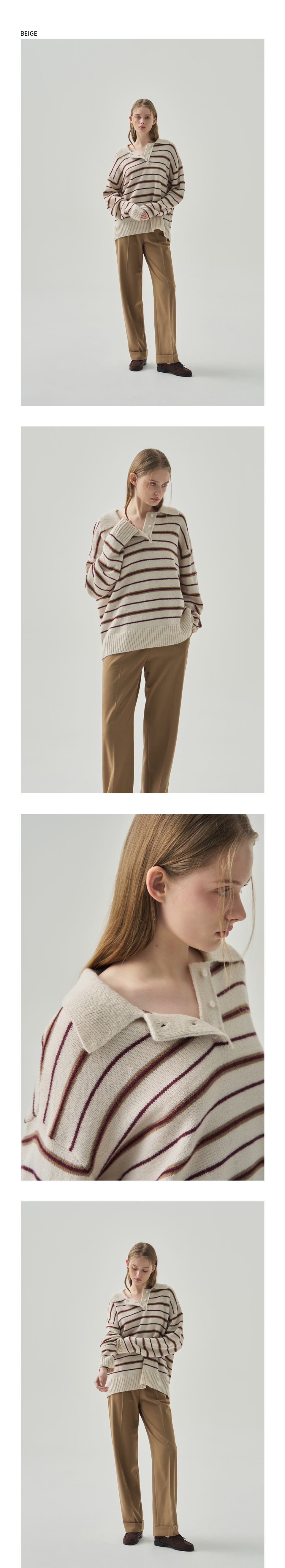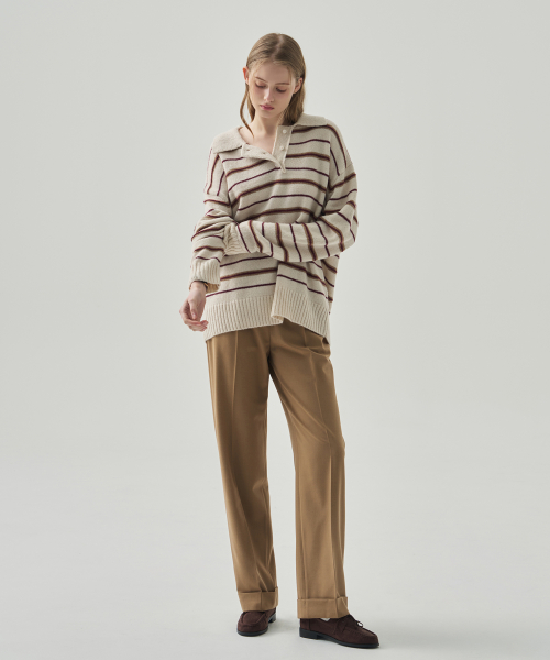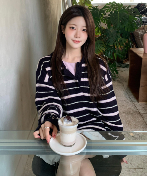 모헤어 울 스트라이프 카라 니트 [NAVY]