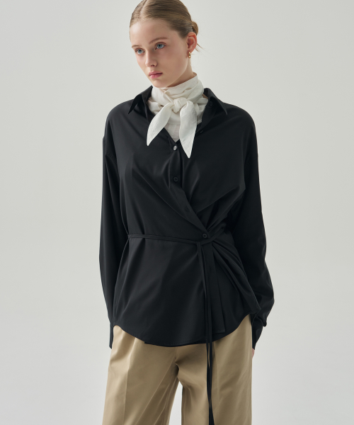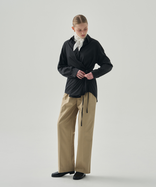링클프리 사이드 버튼 랩 셔츠 [CREAM]