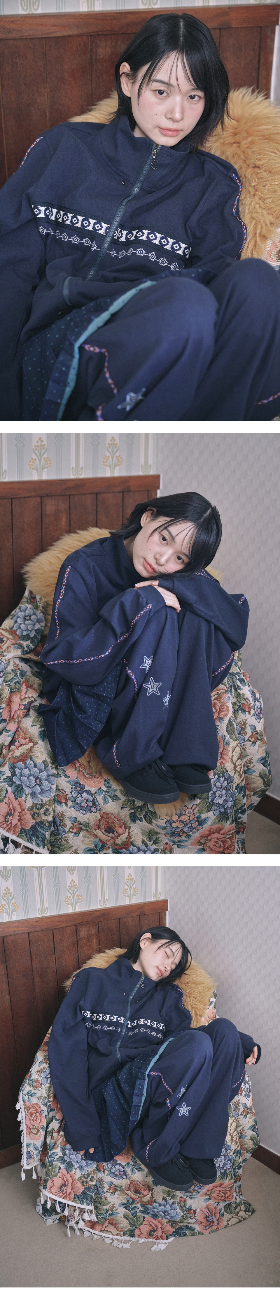 에스닉 라인 트랙 집업 (네이비)