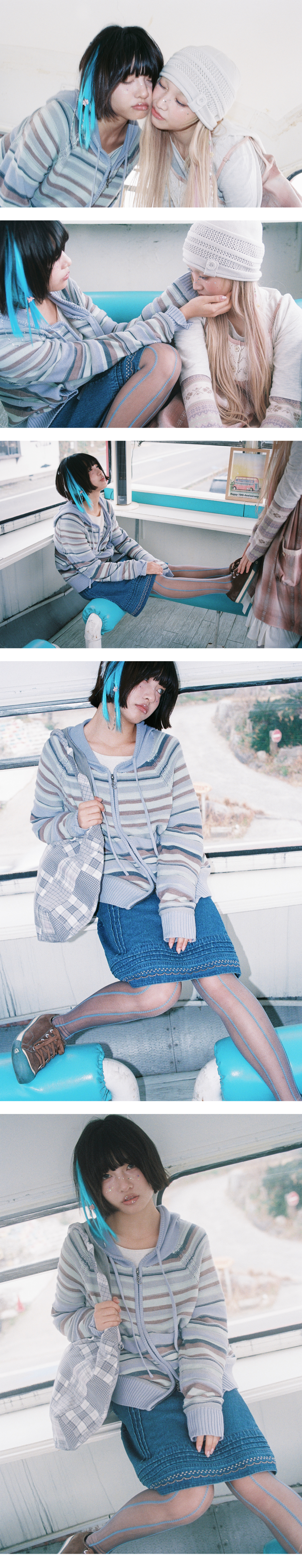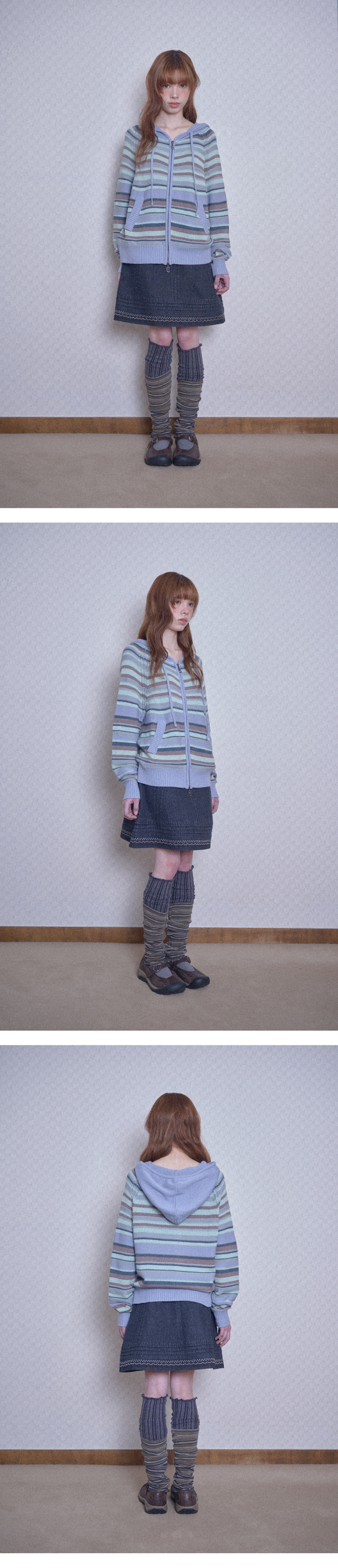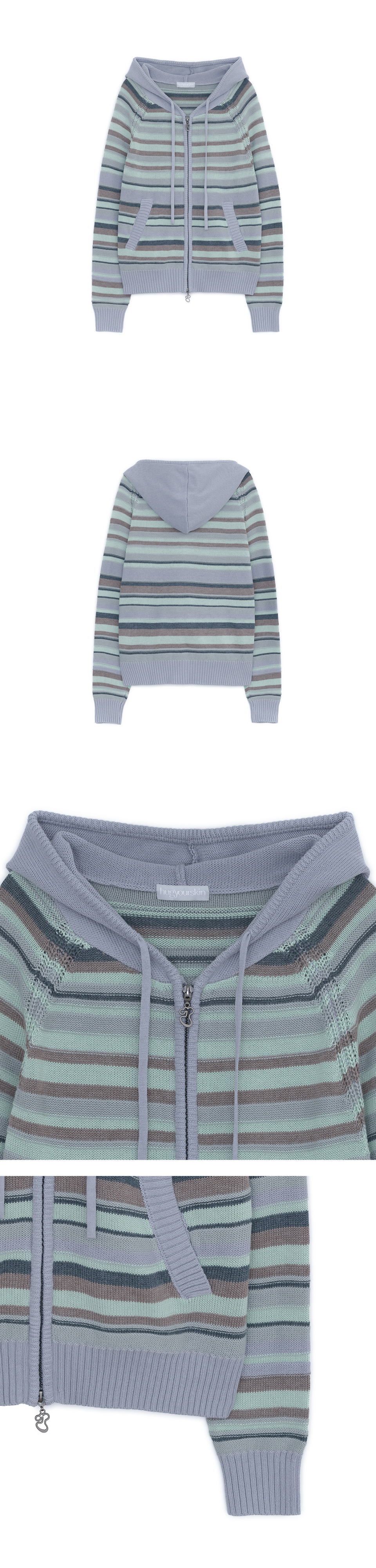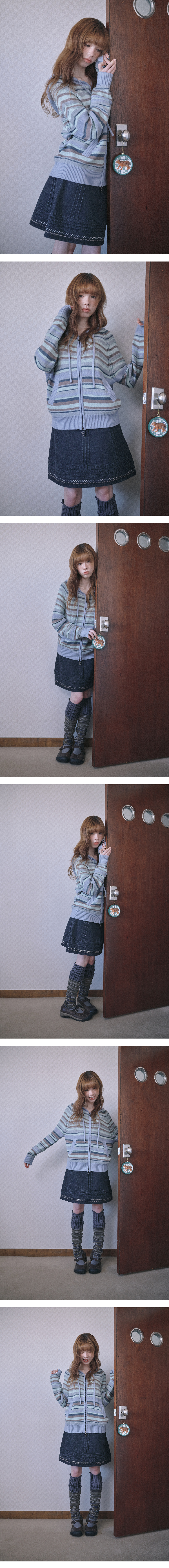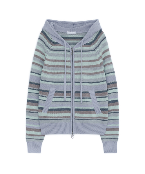 캔디 스트라이프 니트 후드집업 (스카이 블루)