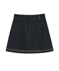데님 니들워크 미디 스커트 (블랙)