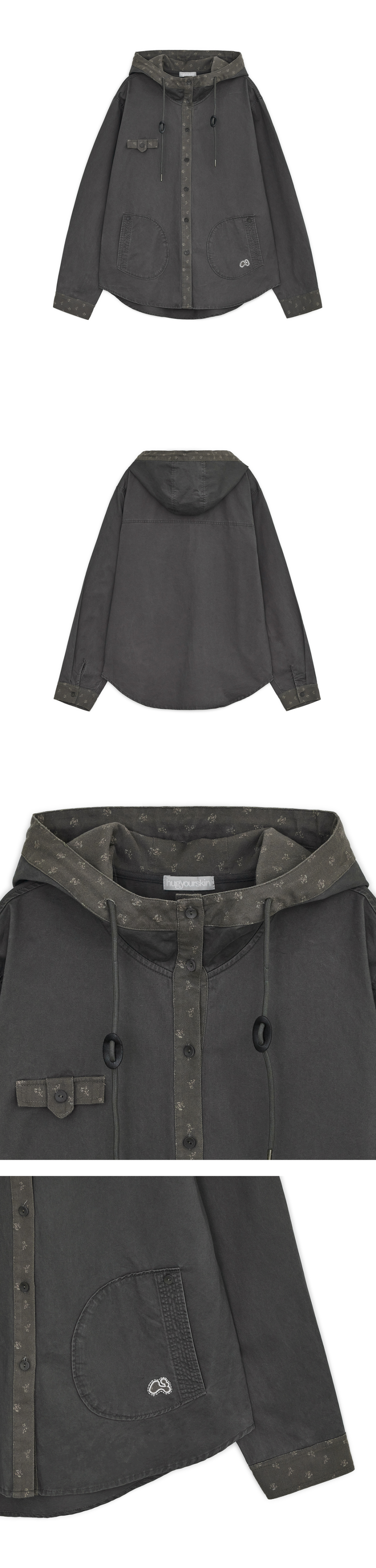 허그유어스킨(HUG YOUR SKIN)은 피부와 가장 가까운 옷을 추구합니다. 자연스러움과 자신의 주체성을 표현하기 위함입니다. 파운더이자 타투 아티스트인 HUG의 프린트를 바탕으로 타투가 상징하는 소수 문화와 대중적 디자인 사이의 접점을 추구합니다.
