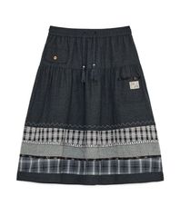 빈티지 패턴 미디 스커트 (블랙 데님)