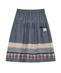 [권연주 PICK] 빈티지 패턴 미디 스커트 (블루 데님)