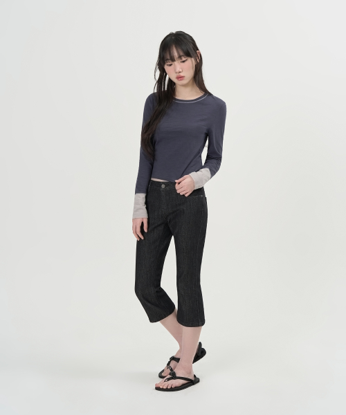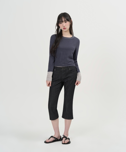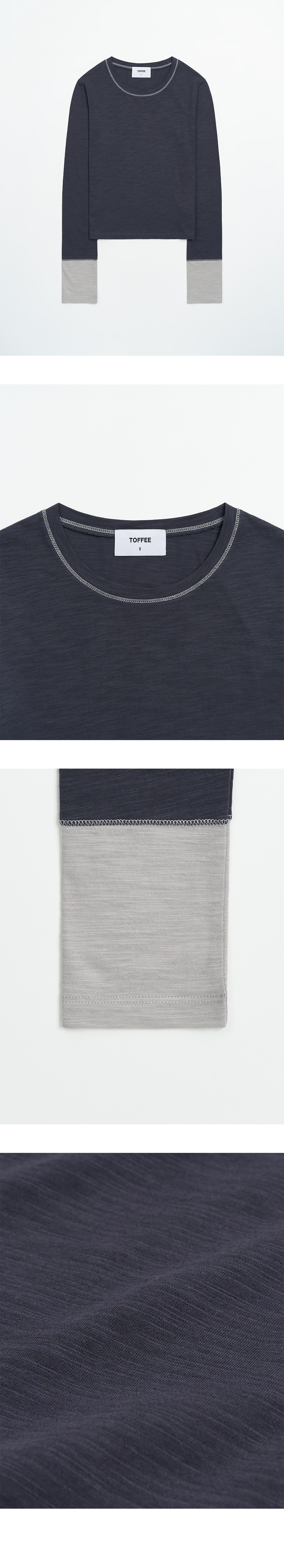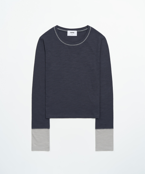 W 롱 슬리브 커프스 티셔츠 (NAVY)