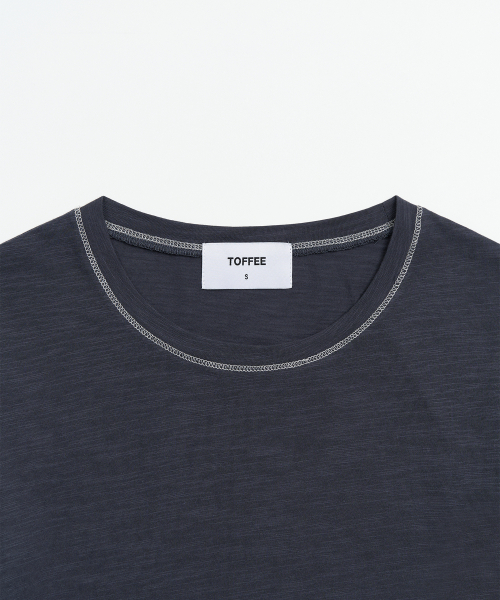 W 라운드 넥 버튼 티셔츠 (CHARCOAL)