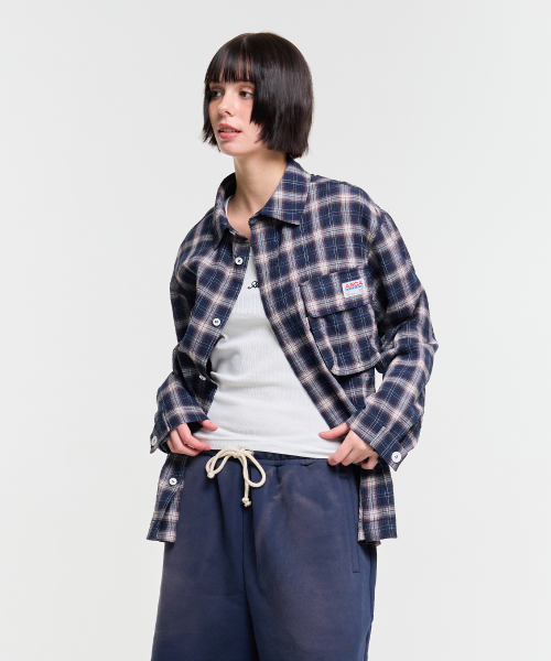 FATIGUE CHECK SHIRTS-NAVY