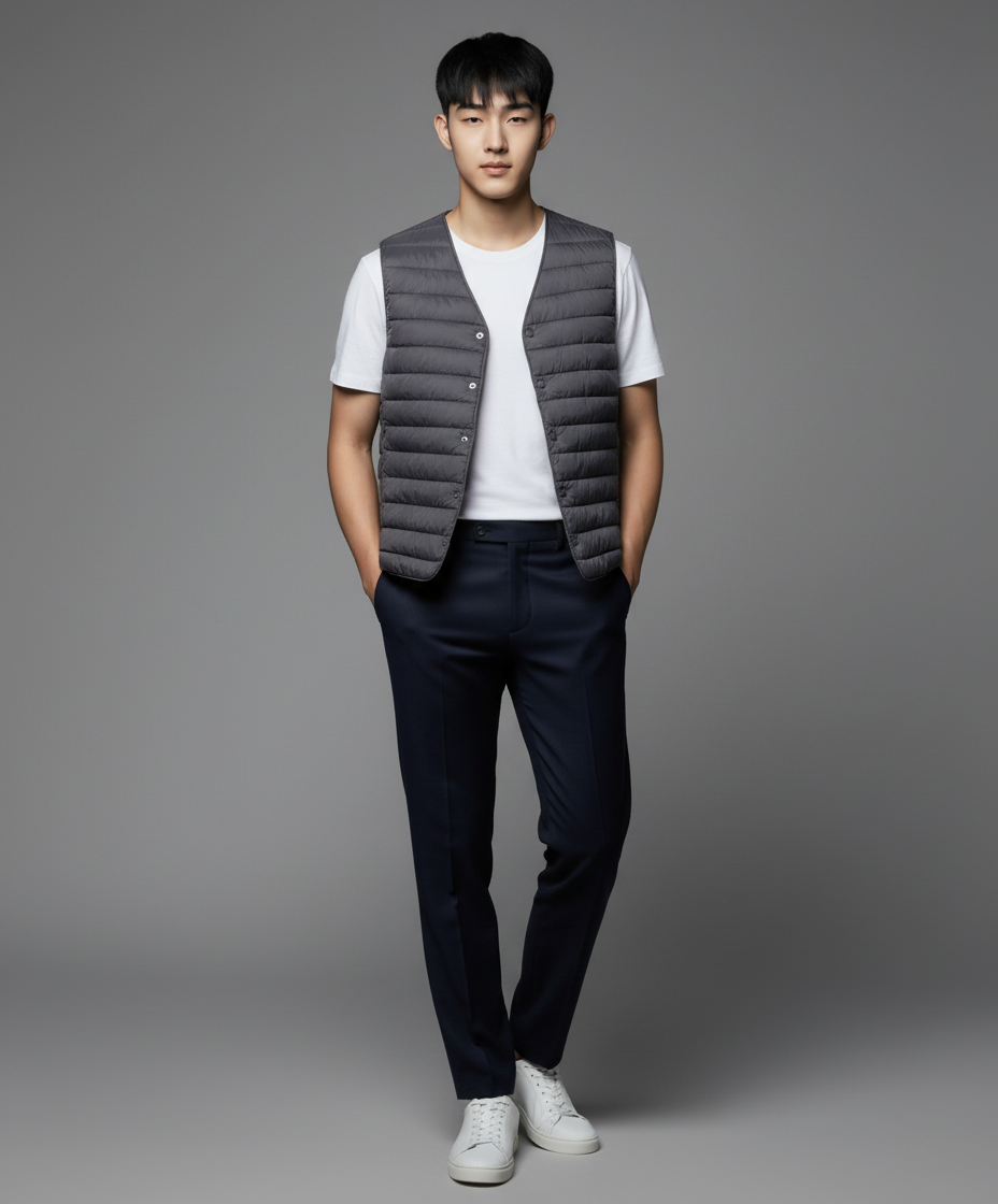 브이넥 라이트 다운 베스트 [블랙] XXL