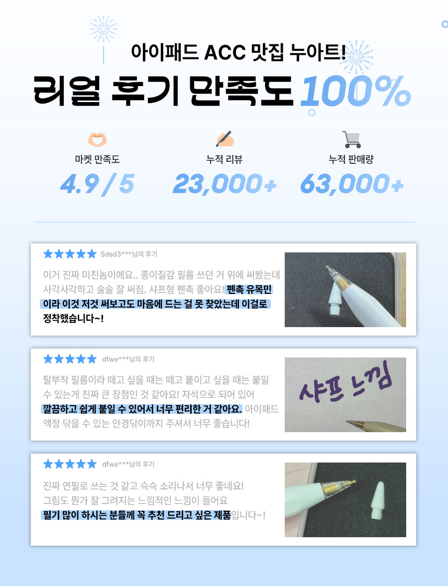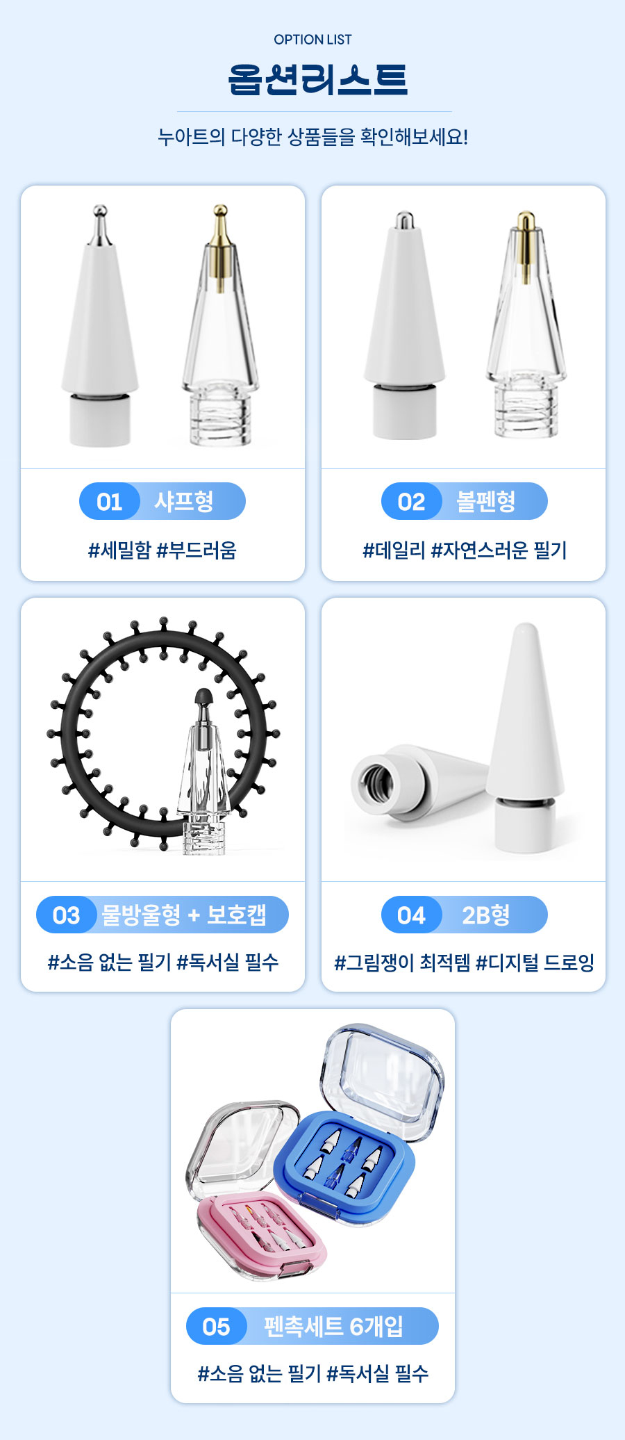 [신학기/개강 필수템]애플펜슬 1/2세대/Pro 호환 교체용 무소음팩 펜촉 세트(6개입) 1세트 블루 케이스