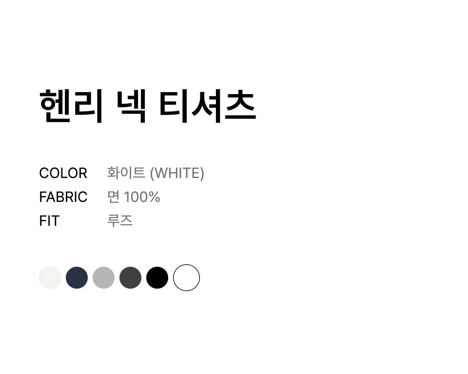 헨리 넥 티셔츠 [화이트]
