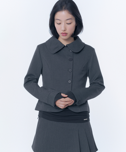 [레이 PICK] Diagonal button Layered hoodie CHARCOAL
