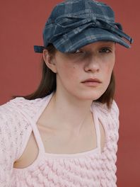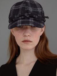 베이직 볼 캡_리본_체크 차콜