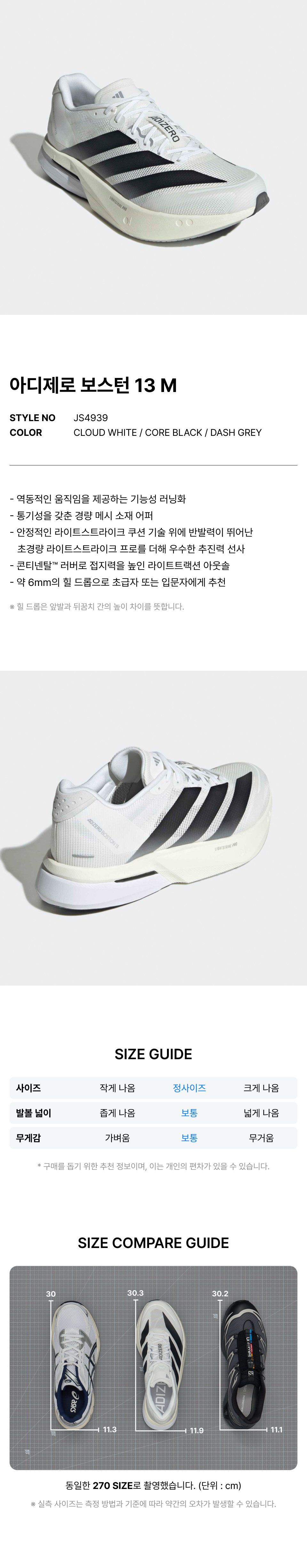 아디제로 보스턴 13 M - 화이트:블랙 / JS4939