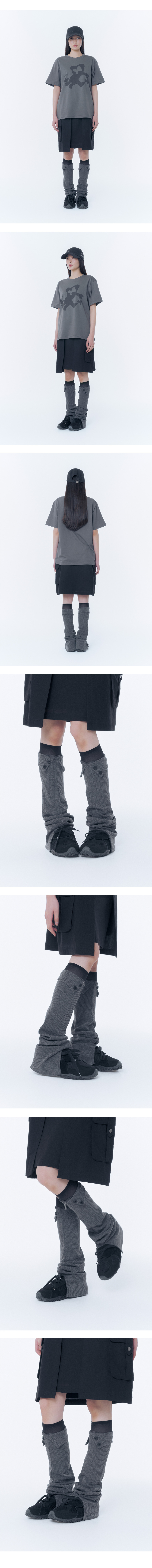 [레이 PICK] Striped layered button leg warmer CHARCOAL