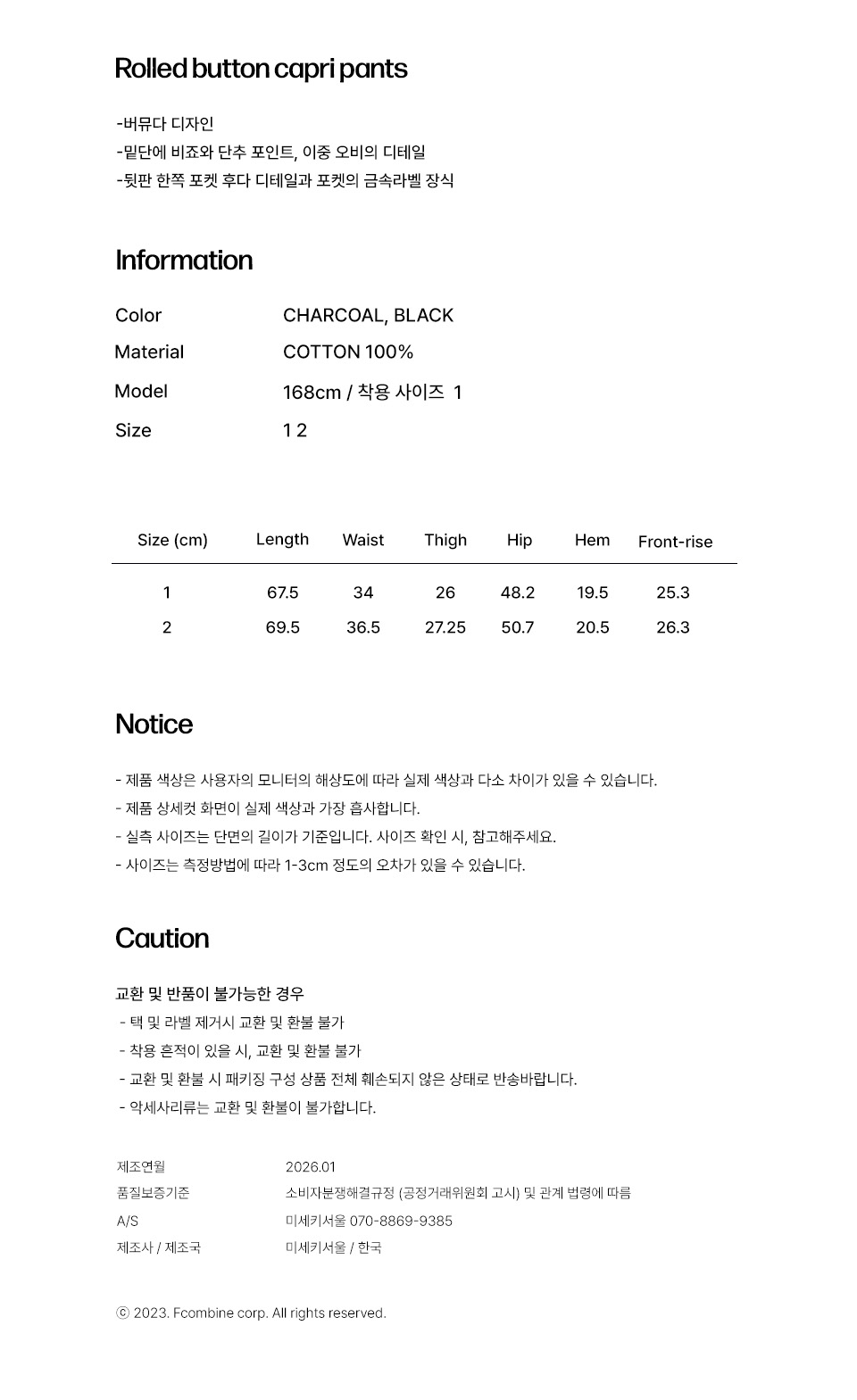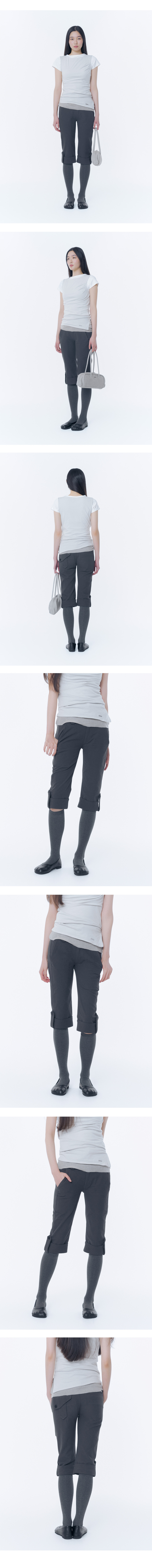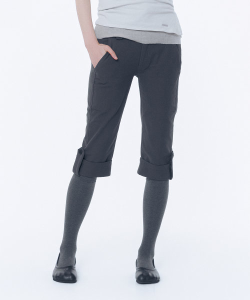 Rolled button capri pants CHARCOAL