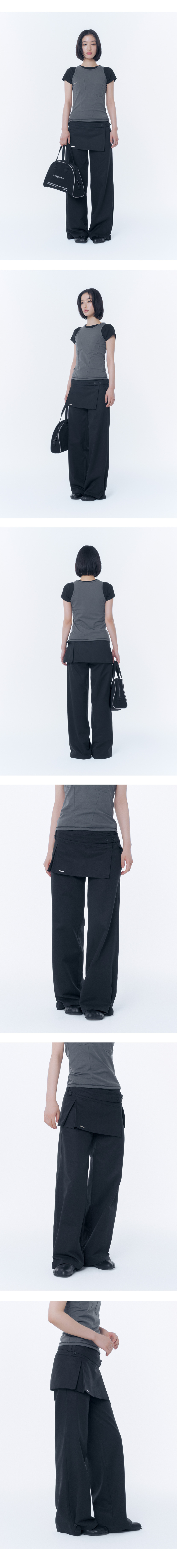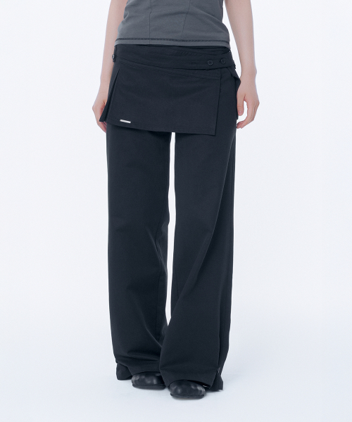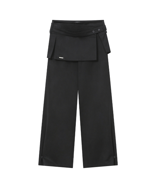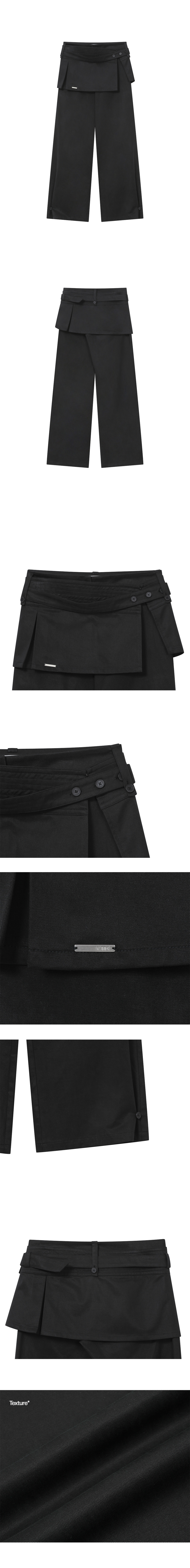 Button tab mini skirt pants set BLACK
