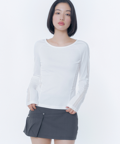 백 리본 카프리 슬리브 티 (화이트)