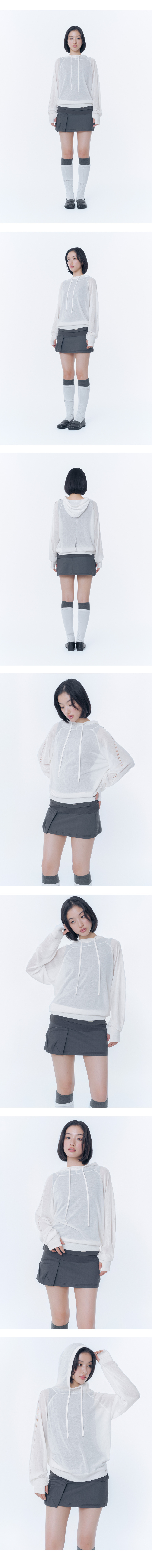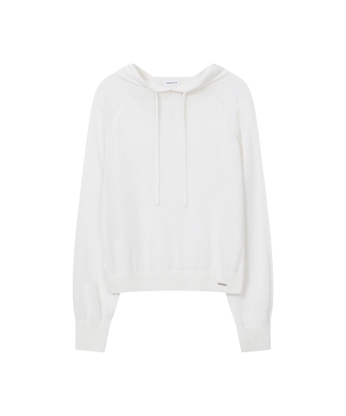 Sheer punching knit hoodie WHITE