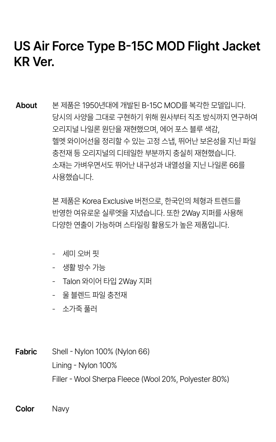 US Air Force Type B-15C MOD Flight Jacket KR.ver Navy