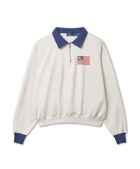 [적립금 5%] W 로고 플래그 플리스 하프 지퍼 풀오버 - 덱워시 화이트