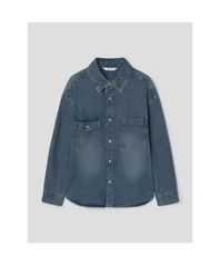투포켓 루즈핏 데님 셔츠 블루