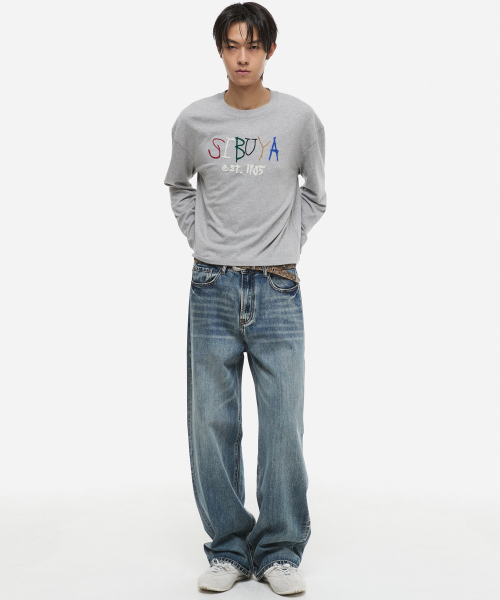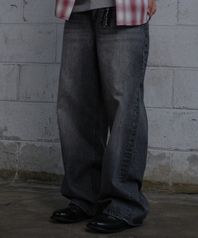 LOOSED WIDE DENIM PANTS (WASHED BLACK)