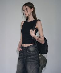 리브드 바인딩 탱크탑 [BLACK]