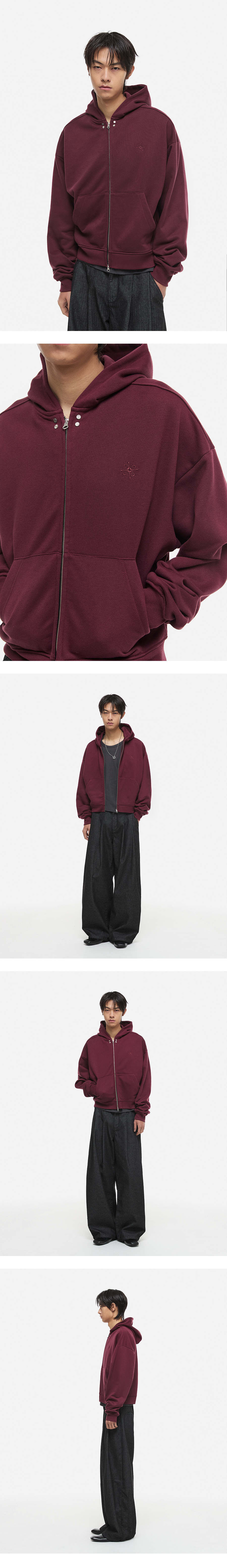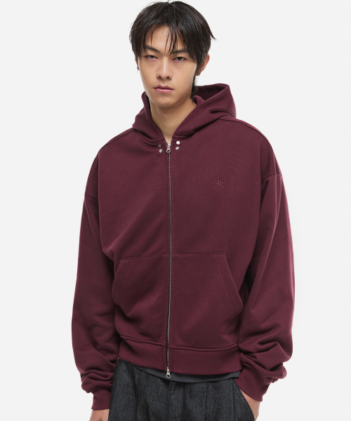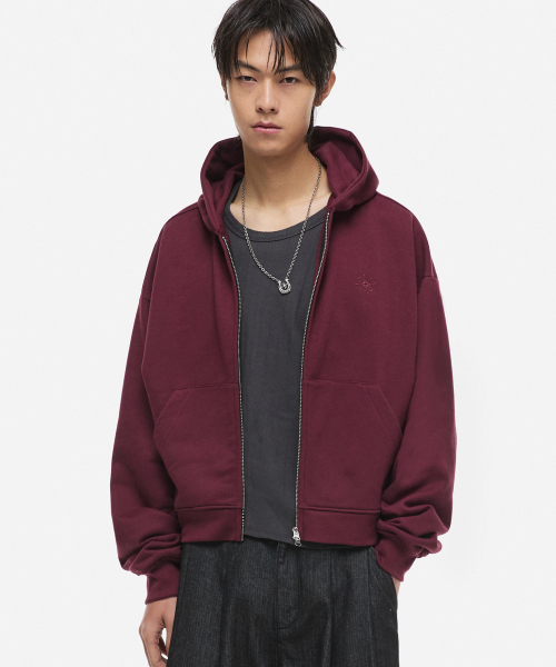 크롭 후드 집업 버건디