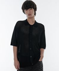 부클 칼라드 반소매 가디건 [더스티 민트]
